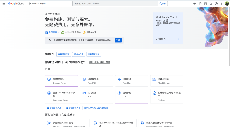 按油管视频白嫖谷歌云二三事 近来无聊,就按油管视频打算白嫖一下谷歌云的虚拟服务器。试了一下,可以用但仅仅只是能用。 过程祥记 注册账号 先去创建一个谷歌账号,这里不做演示。(听说现在谷歌账号越来越难注册了,可以去百度一下怎么注册) 然后登录谷歌云。这里需要一张支持外币的非银联卡来做支付验证,借记卡、